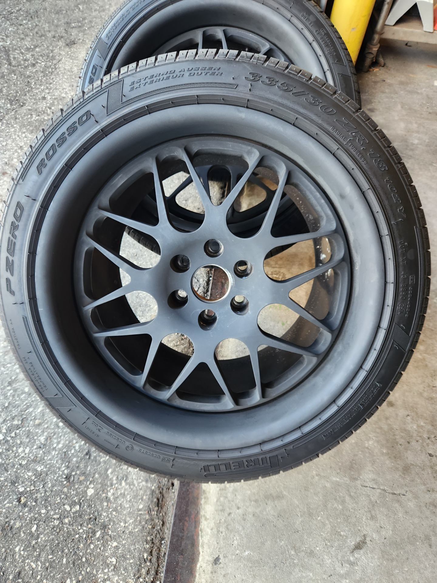 Customer is OK with us powder coating wheel without Disassemble Shaun think he can do and make look good. Semi Gloss Black or Satin. 3 (straightens) Use new stripper NOT BENCO and give to Shaun to personally handle